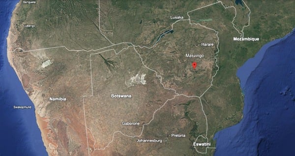 Masvingo is voorheen Fort Victoria genoem. (Skermgreep van Google Earth)