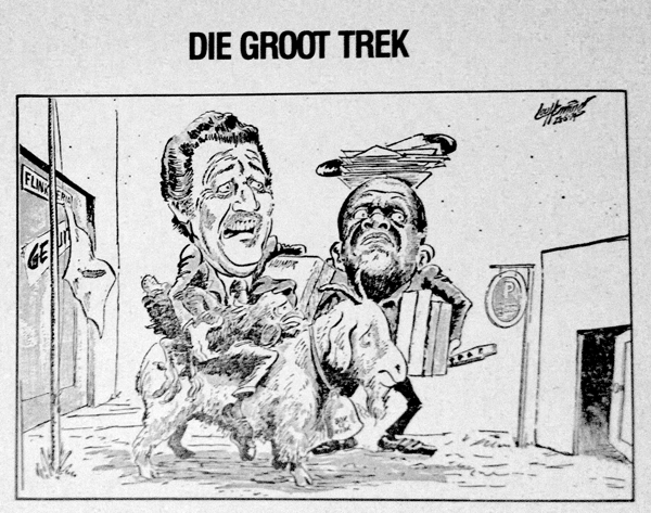 Dit was skoolvakansietyd en ek wou gaan fees hou saam met my pa, maar my ma was nie so geneë daarmee nie. Ek was ’n onskuldige 12 jaar oud en het nie geweet hoe wyd die manne die draai kan vat met so iets soos ’n tienjaarfees nie. Dus reël sy ’n daguitstappie vir ons fees toe saam met huisvriend oom Piet Groen (hy was ’n dominee en ek was dus in goeie hande). Maar ek het vir my ’n bed-rol gebou met ’n ou kombers, kussing, twee onderbroeke en ’n trui. Ek gaan fees toe. Daardie aand het ek nie saam met oom Piet teruggery nie, maar ’n tent gedeel met Kooivlooi, oftewel Gerhard Mynhard, die minister sonder portefeulje en ook Fanus se persoonlike lyfwag. ’n Week later het ek my pa baie beter geken.