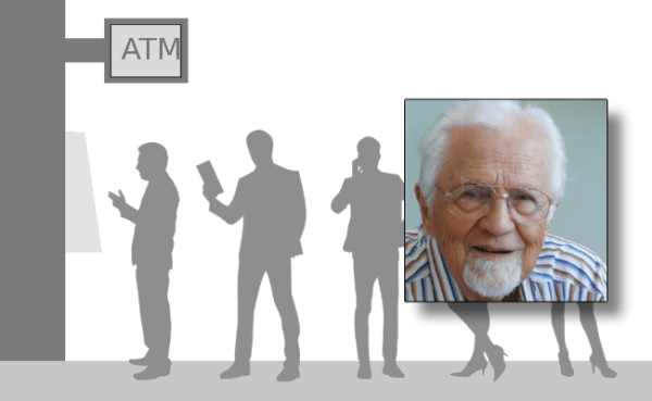 So staan ek ’n paar jaar gelede in ’n kort ry by die bank se OTM oorkant die Duitse deli. Later kom nog iemand van voor af aangestap en kom staan agter my. Dit neem my ’n paar sekondes om te besef wie dit is. Sulke tye wonder mens mos: sal ek, of sal ek nie?