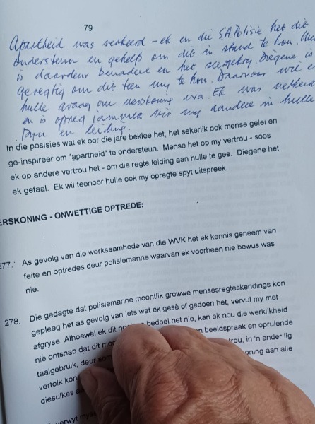 Dele daarvan is in sy eie handskrif bygevoeg. Daardie dokument in my besit lees soos ’n riller. En al het ek glad nie saamgestem met sy voetewassery en oordrewe godsdienstige bekering aan die einde van sy lewe ná apartheid nie, verstaan ek iets daarvan as ek dit alles lees.