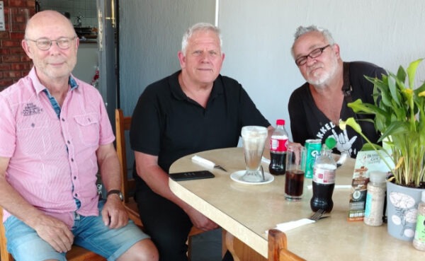Gert is nederig dankbaar dat ons al die pad vir hom kom kuier het in sy woonstel in Beaufort-Wes en hy onderneem om die stroopwafels weg te steek vir almal wat gereeld vir hom en sy sibbe, Natie en Elias, kom kuier. Daar is ander kuiermense, en ons eet Choice Assorted koekies wat Natie met koffie bedien. Elias vertel van sy ervaring van Nederland toe hy verlede jaar saam met Gert daar was.