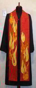 Voorgangers in eredienste dra in hierdie tyd van die kerklike jaar helderrooi liturgiese kleredrag. Dit val my op toe ek Sondag na ’n erediens kyk. Dit is die kleur vir Pinkster, van vuur. Dit simboliseer die vuur wat destyds die beteuterde groepie in die bokamer oorrompel het.