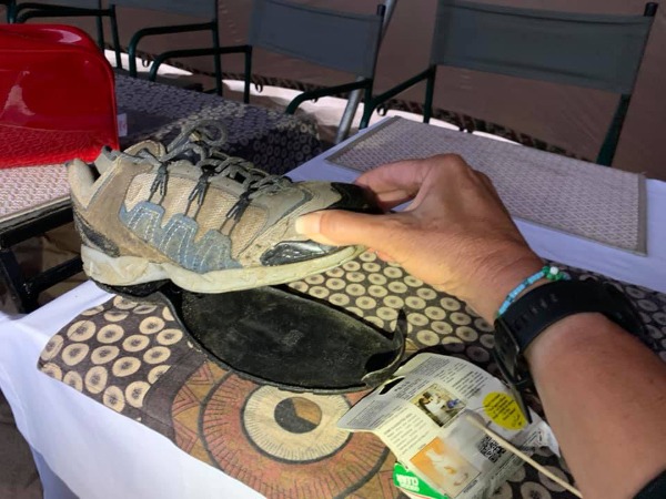 Toe ek die oggend van dag drie my tekkies onder oë neem, is hulle nog klam van die vorige dag se manewales, maar wat erger is, is dat die sool van die regterskoen nou amper tot heel agter losgetrek het. Ek het gelukkig my gom ingepak, maar beslis nie genoeg om die affêre stewig genoeg bymekaar te hou nie. Een van die gidse onderneem toe om die skoen vir my met duct tape te bind terwyl ek solank kaalvoet wegspring. Ek het my plakkies in my rugsak gesit (vir die harde sand), pleisters om twee van my tone gedraai waar ek gister al twee blase gekry het en in die pad geval. In vaste geloof dat die gidse die waarheid gepraat het toe hulle gesê het dat vandag ’n korter en makliker dag sal wees. En hulle het nie gejok nie.