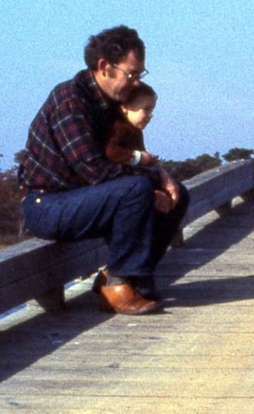 Hans du Plessis op die reling van ’n brug met “Pampoenspokie” – sy naam vir die Van Deventers se jongste, die driejarige Marisa (nou Claassens) – op sy skoot in 1976 op ’n uitstappie na die idilliese Cape Cod in Massachusetts, VSA.