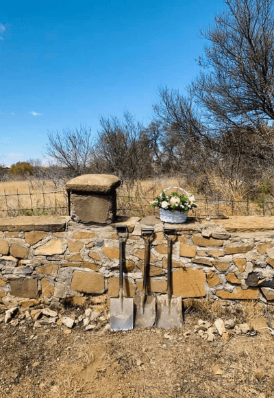 Toe dit tyd word om die graf toe te gooi, het een van sy seuns ’n baal voer losgemaak en oor die kis gestrooi. Die lug was vol van die reuk van pasgesnyde gras. En toe die kis mooi toegegooi was met ’n groen voerkombers, het die grawe die holte met Vrystaatse aarde opgevul.