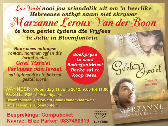 Go'el Yisra'el - Verlosser van Israel boekbekendstelling met Hebreeuse ontbyt tydens Vryfees: 11 Julie 2012