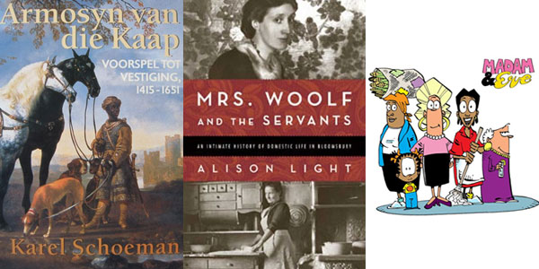 Belangrike voorbeeldboeke is verder Karel Schoeman se Armosyn-studie waarin hy die geskiedenis van slawerny beskryf deur een vrou sentraal te stel. Hy het die boeke gebaseer op ’n magdom gepubliseerde bronne oor slawerny. My idee was om ’n soortgelyke soort geskiedenis oor huiswerkers te skryf aan die hand van veral letterkundige bronne, om te kyk na bogenoemde Stuart Hall se “cycle of representation”: die invloed op lesers wat uitgaan van voorstellings van huiswerkers; die sirkelgang van uitbeelding. Steeds meer het geskiedenis bygekom: oor die vroeë Kaap en migrasie na die stede. Ook sosiologie. Voortdurend vloei teks en konteks in mekaar oor.