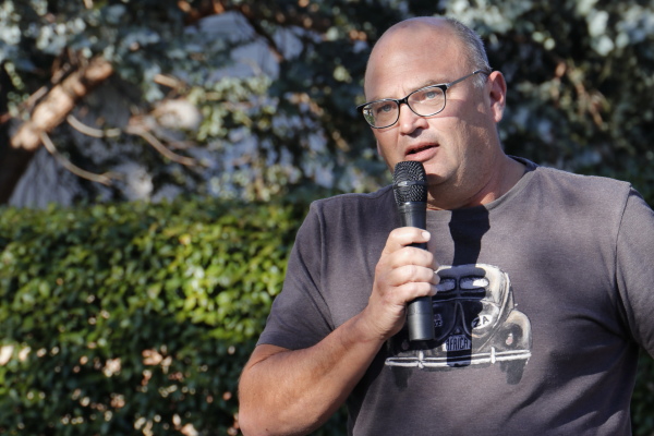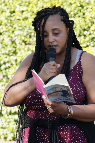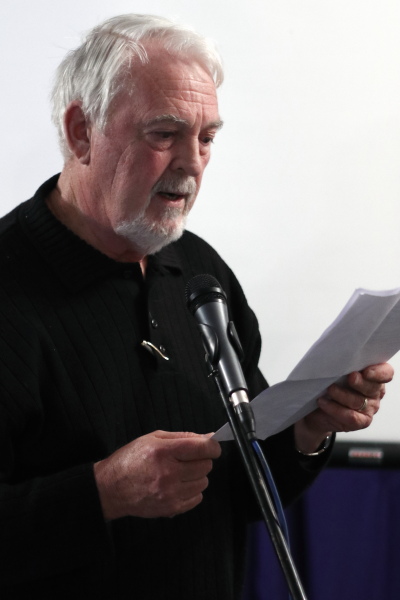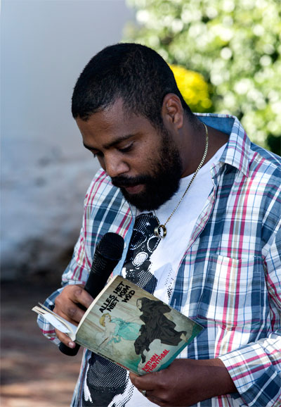 Veldskoolbywoner Johan Kotzé het by die “Vuurvlieë en sterre” open mic-geleentheid uit eie werk voorgelees. (Foto: IdV)