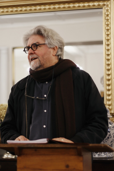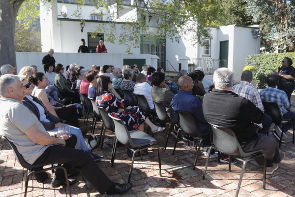 Theo Kemp verwelkom die soiréegangers by die Jakes Gerwel-huis (Foto: JK)