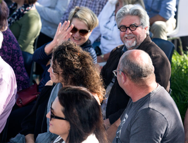 Darryl David en Bibi Slippers by ’n groep (Selfoonfoto: EvH)