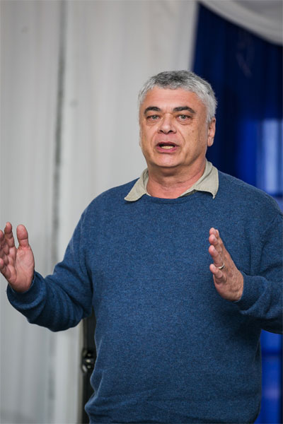 Etienne van Heerden het oor die Oos-Kaapse Karoo as agtergrond van sy skryfwerk gepraat. (Foto: JK)