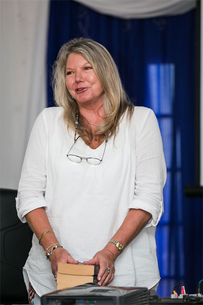 Sandra Antrobus in die biblioteek van die Victoria Manor. (Selfoonfoto: EvH)