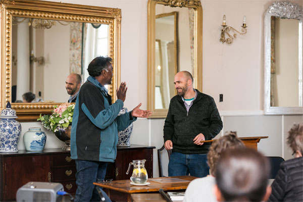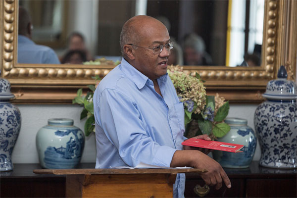 Soirée-organiseerder Darryl David luister aandagtig. (Foto: JK)