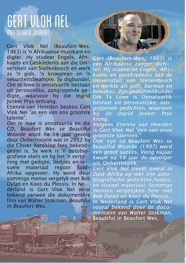 Die Festival voor het Afrikaans is van 13 tot 16 Junie 2013 in volle swang. Hier is foto's van gisteraand se optredes in De Melkweg (Amsterdam) en uittreksels uit die feesprogram. Die feestelikheid duur die res van die naweek in Den Haag voort. Sien die volledige program van die Festival voor het Afrikaans as jy dit dalk nog die naweek kan bywoon.