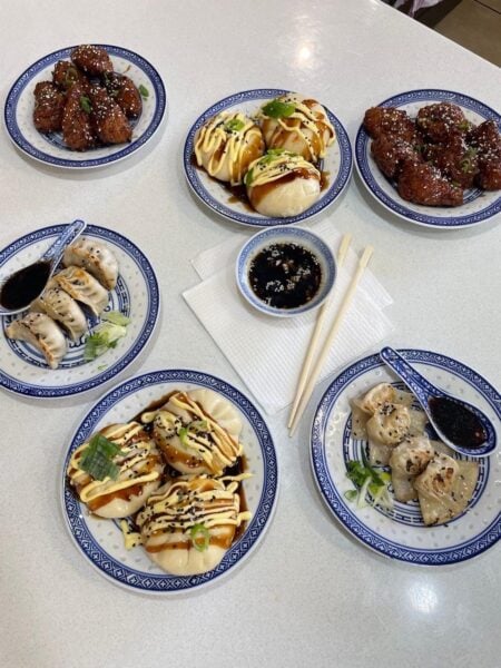 - dumpling platters, bao buns en noodles;