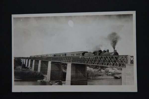 Toe ek by Human & Rousseau begin werk het, was daar op Koos Human se rak ’n eksemplaar van Olga Levinson se boek oor Adolph Jentsch. Ek het onthou hoe die afbeeldings daarin my laat voel het – en jy moet onthou, dit was kleurdrukwerk uit die vroeë sewentigs, glad nie so juis soos vandag se drukwerk nie. Maar dit is die dinge wat by my opgekom het toe ek moes begin dink hoe die landskap buite die trein gelyk het, die dinge wat mense uit die veilige toevlug van die trein se eetwa sou sien. Google Earth maak deesdae baie dinge moontlik, maar dit gee jou nie die gesamentlike indrukke van eensaamheid, verlatenheid, ondraaglike hitte, die klein toevlug van skadukolle onder bome, die gras tussen doringbome, die spikkellandskap van rotse aan die voete van koppies en berge gestrooi nie. En dit is wat Adolph Jentsch my kon gee. Ek het daardie boek gesoek, en gelukkig het einste Herman Binge ’n eksemplaar gehad.