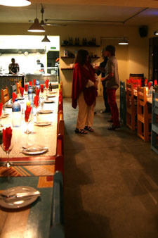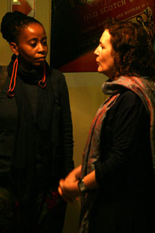 | Digters Marlise Joubert en Pieter Odendaal gesels in die Amazink Eatery in Kayamandi. | Mbali Vilakazi en Finaula Dowling, beide genooide digters, voor die voorlesing in Amazink. |