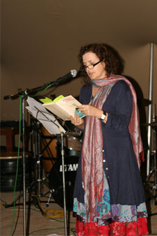| Veelbekroonde digter Ingrid de Kok het van haar gepubliseerde en ongepubliseerde werke voorgelees. | Ingrid lees ’n reeks gedigte oor MIV-Vigs . |