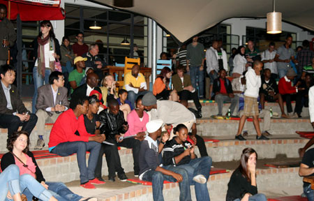 | ’n Groot groep mense het opgedaag om die eerste InZync poësie-sessie by Amazink te beleef. | |