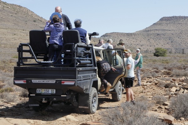 Daarna is ons met bakkies na Schreiner se graf. Net ’n klein groepie was dapper genoeg om die rit mee te maak.