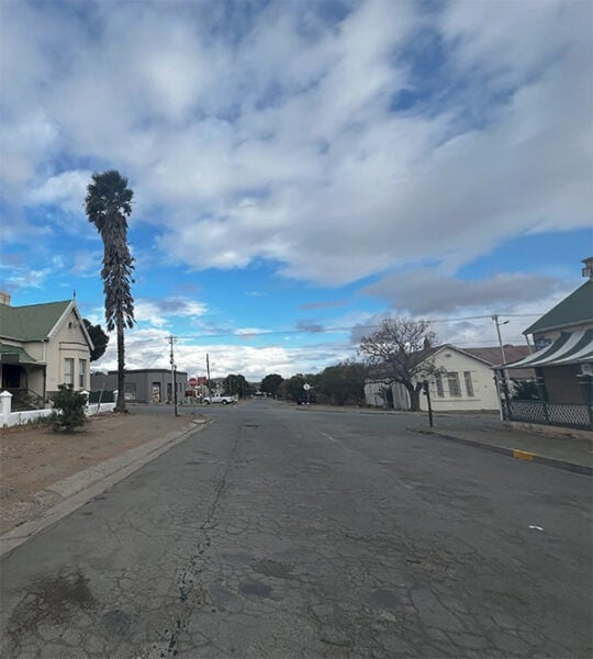 Die laatmiddag Karoo-lig val sag op een van die Tuishuise in Markstraat.