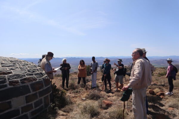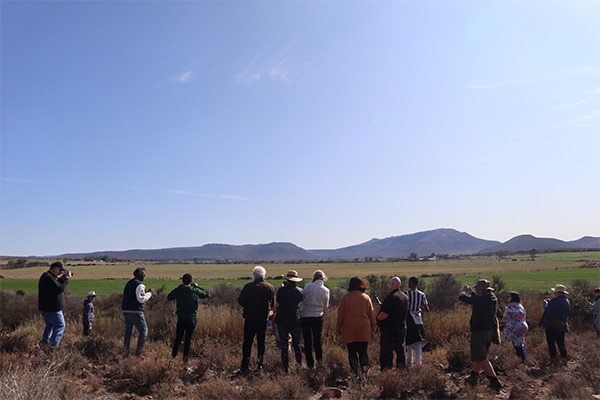 Feesgangers kyk uit oor die Visriviervallei op Kranzplaas waar Olive Schreiner gewoon het.