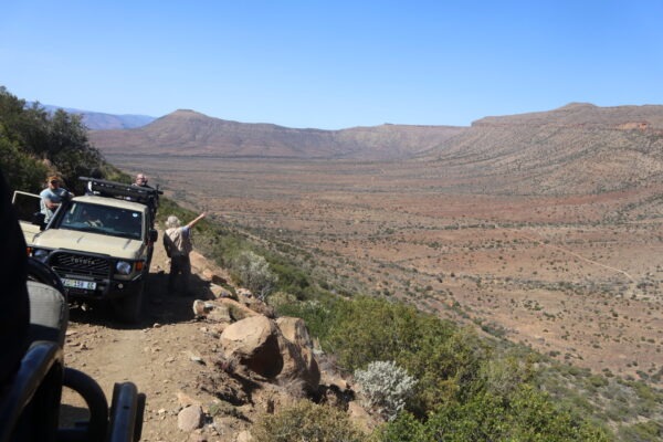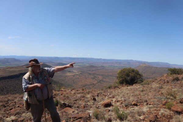 Terwyl ons wag vir die ander bakkies, wys Basil Mills iets oor die landskap uit.