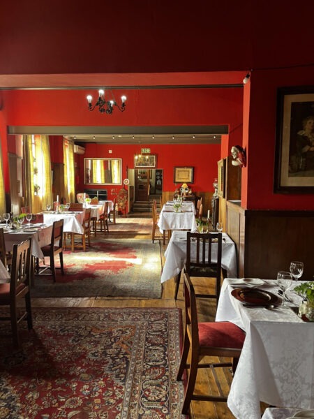 Die lente is nog nie op pad nie. Die kaggel in Victoria Manor se feestelike rooi eetkamer was baie welkom en gesellig!