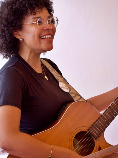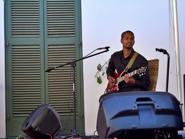 Ashmit Malan speel kitaar vir Natalia da Rocha