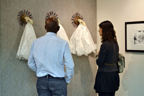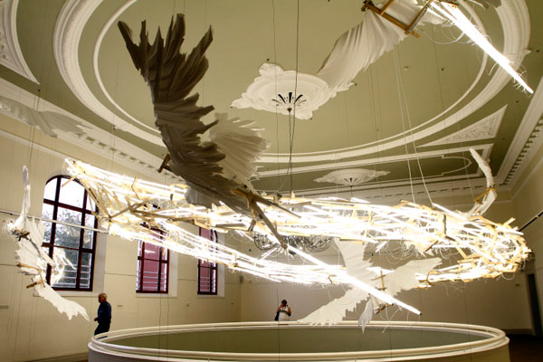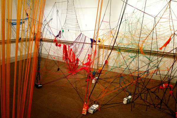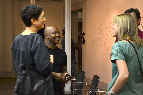 | Liza Grobler, in samewerking met eerstejaarstudente, het hierdie kunswerk, getiteld Waarheid en Digting, 2013 geskep. |