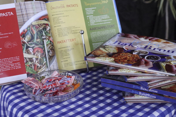 Carmen Klate, Marjorie Myburgh en Lucille Myburgh gesels by die bekendstelling van Pniëlers bak & brou. (Foto: Johannes Nieuwenhuys)