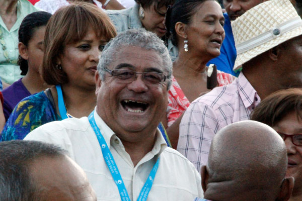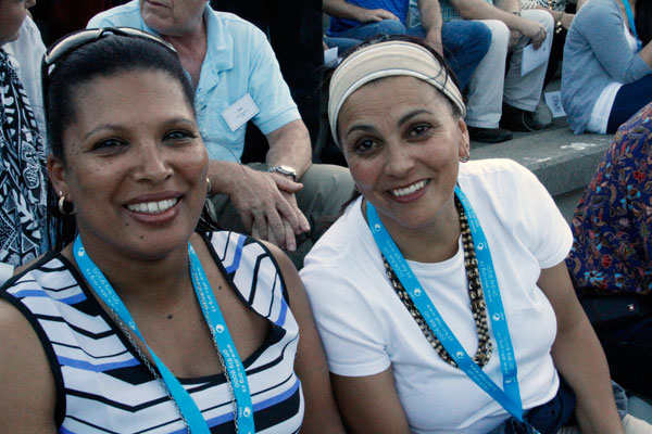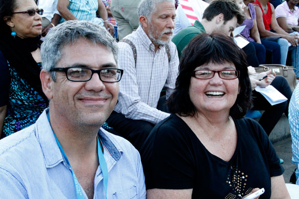 Die premier van die Wes-Kaap, Helen Zille, bespreek die danspassies met Japie Gous van die ATKV.