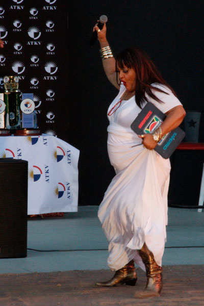 Gertruida Lombardt van die Loeriesfontein Kliptrappers het die David Kramer-trofee vir beste rielliedjie verower.