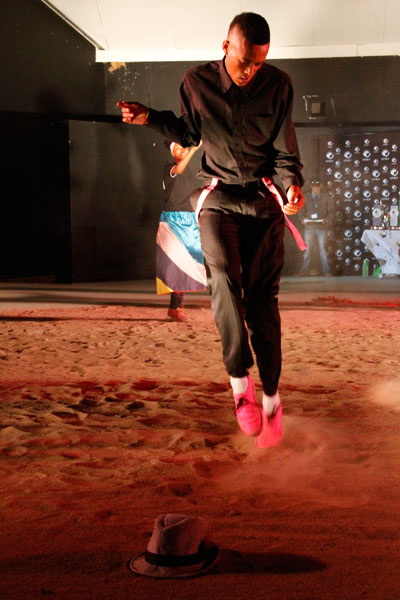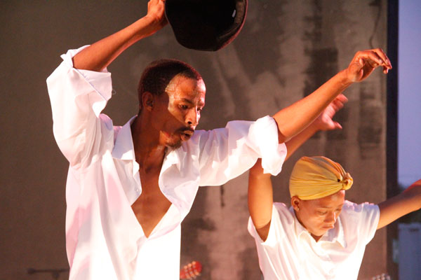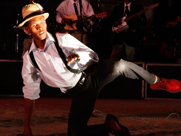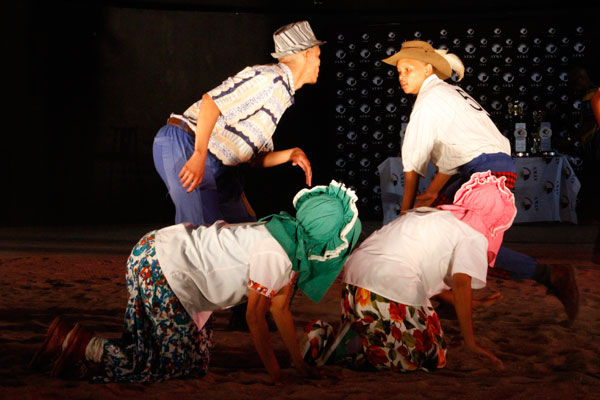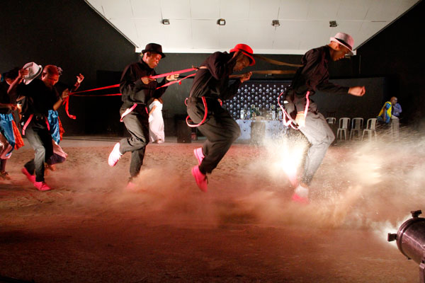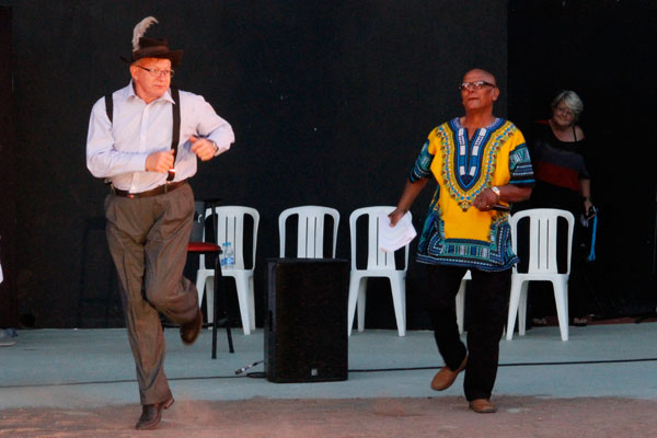 Japie Gouws en Elias Nel van die ATKV wys hulle danspassies.