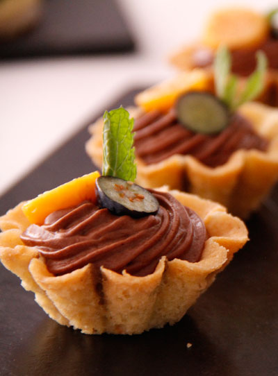GRUYÈRE-EN-UIETERTJIES MET HASELNEUTE Gewoonlik maak ek sommer ’n lekker groenslaai om saam met hierdie tertjies te geniet. My gunstelingslaaisous maak ek deur ’n eetlepel mosterd, ’n eetlepel heuning en ongeveer ’n halwe koppie okkerneutolie bymekaar te klits. Die slaaisous kan ook met ’n paar druppels room verdun word. Dis regtig heerlik en die smaak komplementeer die tertjies. Om te verseker dat die pasteideeg nie pap word nie, smeer dit met eierwit voordat jy die vulsel in die tertdoppies skep. As jy nie ’n dubbelkastrol het nie, is dit maklik om jou eie te maak deur ’n mengbak van vlekvrye staal oor ’n kastrol met kokende water te plaas. Maak net seker dat die onderkant van die bak nie aan die water raak nie. 1 rol broskorsdeeg, ontdooi Voorverhit die oond tot 200 °C. Voer 6 goedgesmeerde klein tertpannetjies uit met die broskorsdeeg. Smelt die botter in ’n pan en laat die uie daarin sweet tot goud en deurskynend. Laat effens afkoel. Klits die eiers en 150 ml van die room saam, geur en giet die mengsel in ’n groot beker. Haal die tertjies uit die koelkas en giet ’n bietjie van die room- en-eiermengsel in elke tertvorm, maar moenie te vol maak nie ... dit mag dalk oor die rande van die tertjies rys. Bak die tertjies vir ongeveer 10 minute in die warm oond, of tot die vulsel stol en die pasteideeg ’n pragtige bruin kleur het. Verhit intussen die asyn in ’n dubbelkastrol en klits die eiergele in die asyn tot die mengsel lig en romerig is. Giet die gesmelte botter baie stadig by die mengsel en hou aan met klits tot dit ’n dik emulsie vorm. Laat afkoel. Klits die res van die room tot dit sagte punte maak en vou by om ’n gladde hollandaisesous te maak. Haal die tertjies uit die oond en skep ’n bietjie hollandaise oor elke tertjie. Sit terug in die oond om vir nog 3 minute te bak tot die hollandaise oppof en ’n pragtige goudbruin kleur kry. Garneer met haselneute en sit dadelik voor met ’n vars groenslaai. Genoeg vir 6