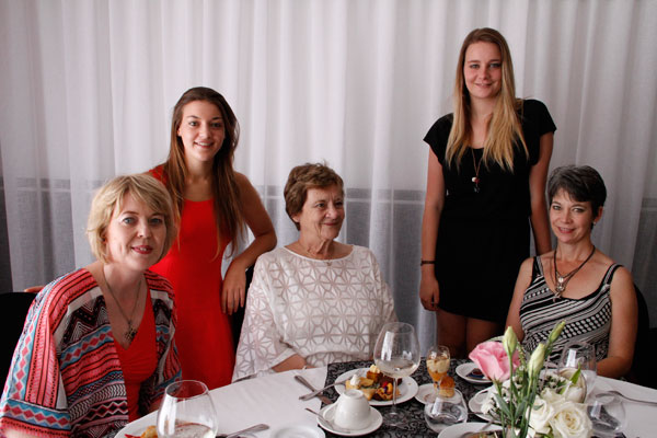 Agter: Lise, Jani, Jeannine en Grethe