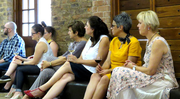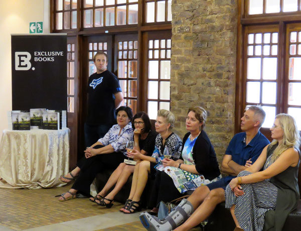Die gehoor sit aandagtig en luister na die onderhoud met die skrywer Charl-Pierre Naudé.