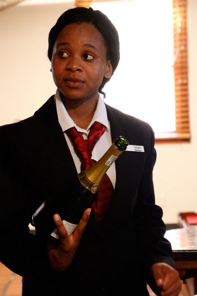 Nosipho Dlamini staan gereed met die vonkelwyn.