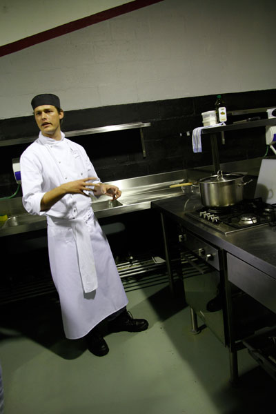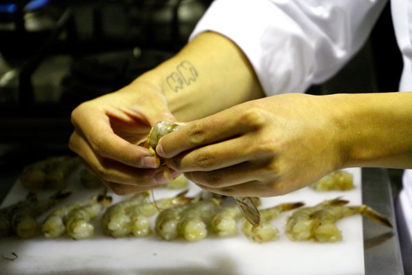 Natasha Twynham het reggestaan om die steurgarnaal-tempura te demonstreer.