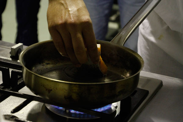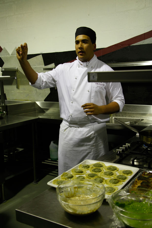 Peter Duncan het die hoofgereg voorberei: kraakvelforel, voorgesit op spinasie-en-feta-ravioli met geskroeide knoffel-en-tequilasous.