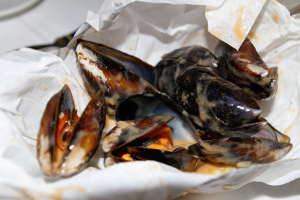 Die mossels is voorberei in 'n klappermelk-gemmer-sitroengras-sous.