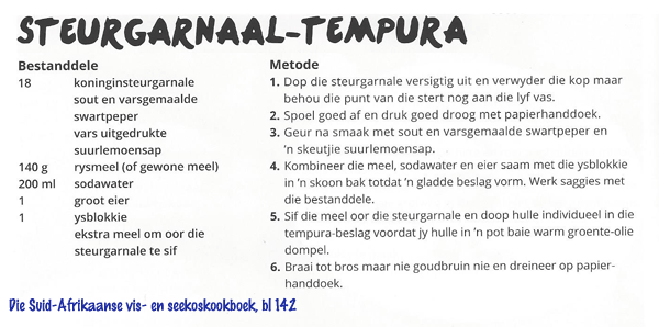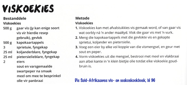Baie interessant. Sal beslis die resepte uittoets. Ek hou veral van die eenvoud van die resepte asook die geregte 'rondom ' visdisse soos die maak van skyfies ,souse ens.