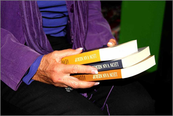 Miemie de Waal laat haar boek teken.