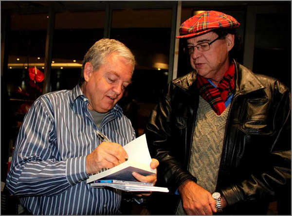 Leon teken Fred Simpson se boek.