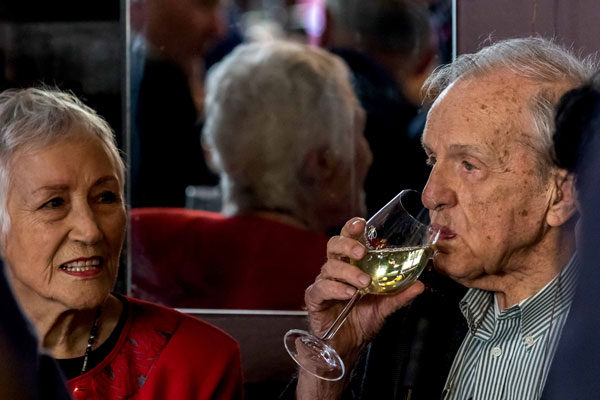 Frans Rautenbach besig om boeke te teken.