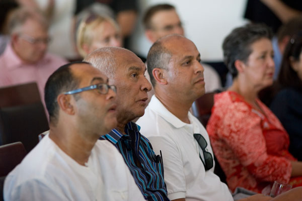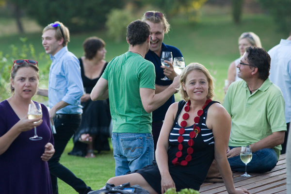 | Vrolike gaste ontspan na afloop van die programbekendstelling | |