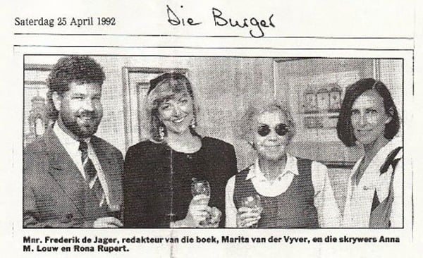 Uit die argief: ’n Jong Frederik de Jager saam met Marita van der Vyver, Anna M Louw en Rona Rupert (Foto: verskaf)