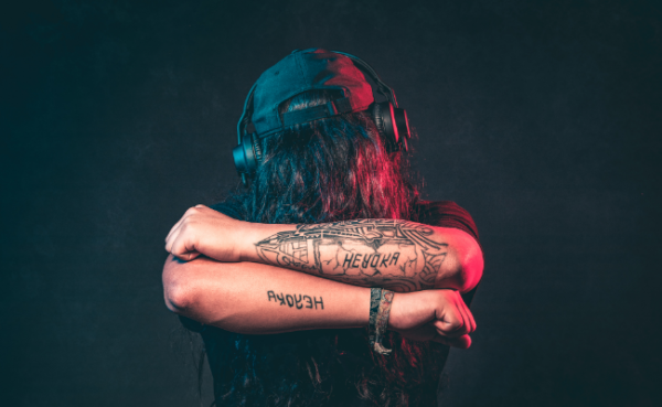 beur teen ripped jeans waardeur tattoos knipoog.