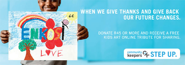 Dit is ’n geleentheid aan die breë publiek om dankie te sê aan mense wat ’n verskil in hul lewens gemaak het en ook terug te ploeg in kinders se lewens. Lesers kan ons webtuiste besoek (www.communitykeepers.org) en drie maklike stappe volg om dankie te sê: