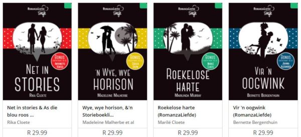 RomanzaLiefde is lig, dit is soet en dit lees vinnig. Teen net R29,99 per titel is dit boonop uiters bekostigbaar. Elke aankoop het ook ’n bonuskortverhaal by, wat dit nóg lekkerder maak.